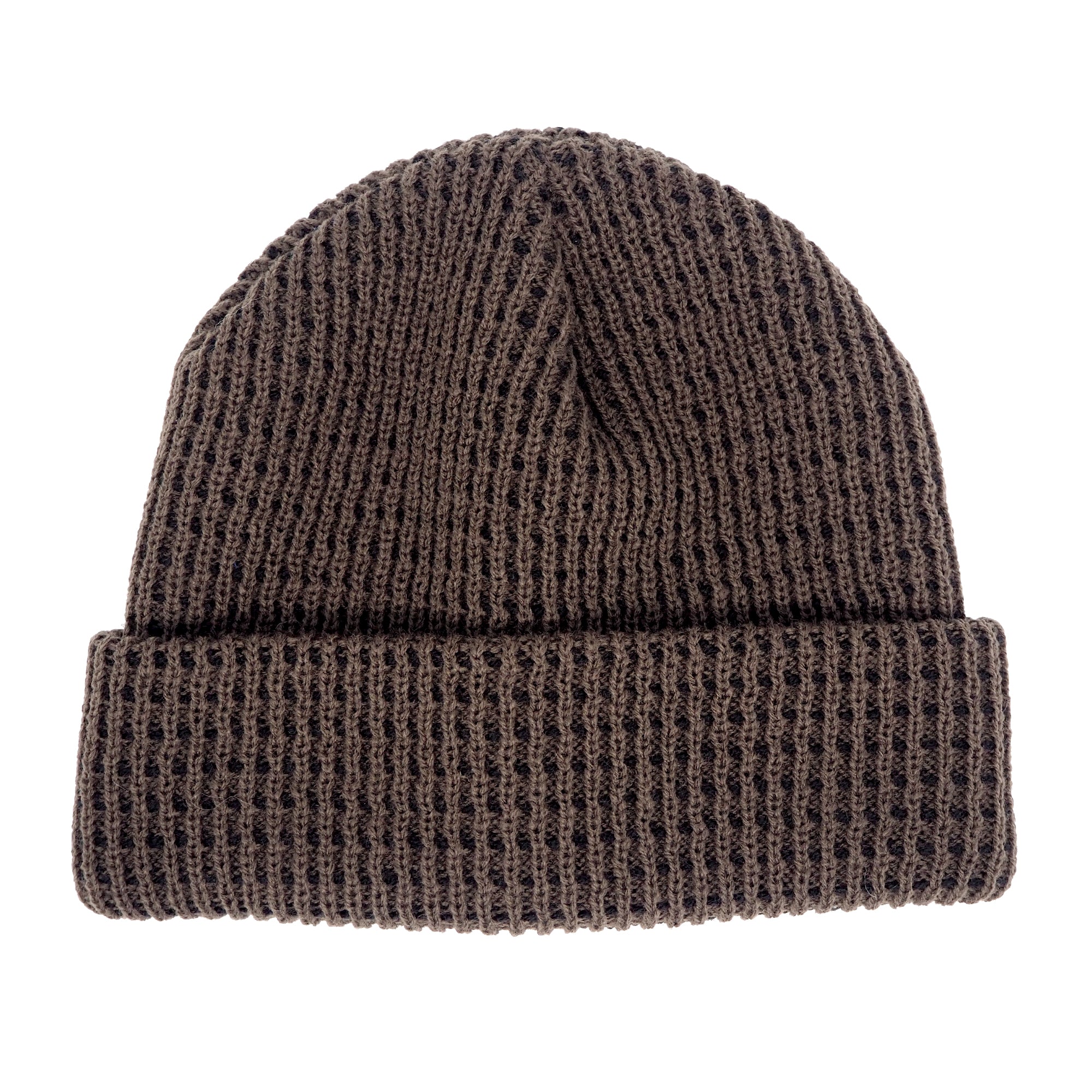 Returning this season, the Waffle Beanie is made using a cross hair pattern weave. The main body color is met with a contrast yarn, woven horizontally across the knit, giving it a waffle like appearance. The crown is set to 20cm and is made using 1 panel. The knit is super soft to touch and is washable. The brim is a single folded 7cm height. Unisex.